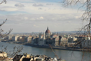 Überwältigende Blicke bieten, ob am Abend oder am Tag, die weißen, türmchengeschmückten Aussichtsterrassen der Fischerbastei auf dem Burgberg: tief unten die breite, bei Sonnenschein und klarem Himmel tatsächlich blau schimmernde Donau, die sieben Brücken, links im Norden die lange Margareteninsel, auf der gegenüberliegenden Seite des Flusses das mächtige Parlament und die Uferpromenade von Pest.